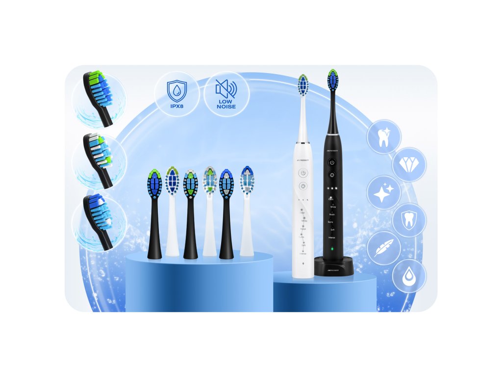 To je celovita tehnologija, ki že v nekaj dneh izboljša zdravje dlesni, zmanjša zobni kamen in zagotavlja celovito ustno higieno – vse v eni napravi!