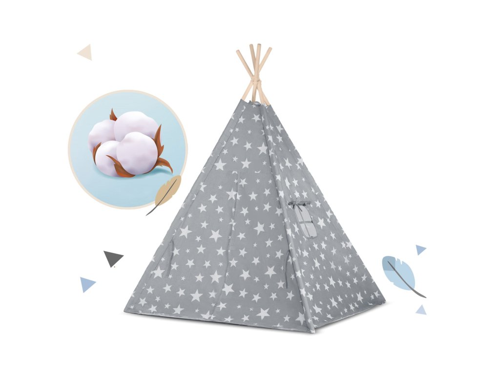 Šotorček teepee za otroke Nukido z lučko - siv z zvezdami