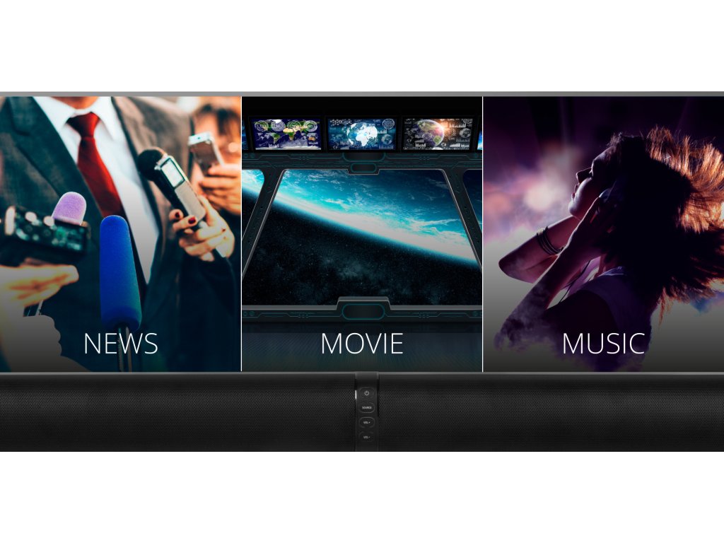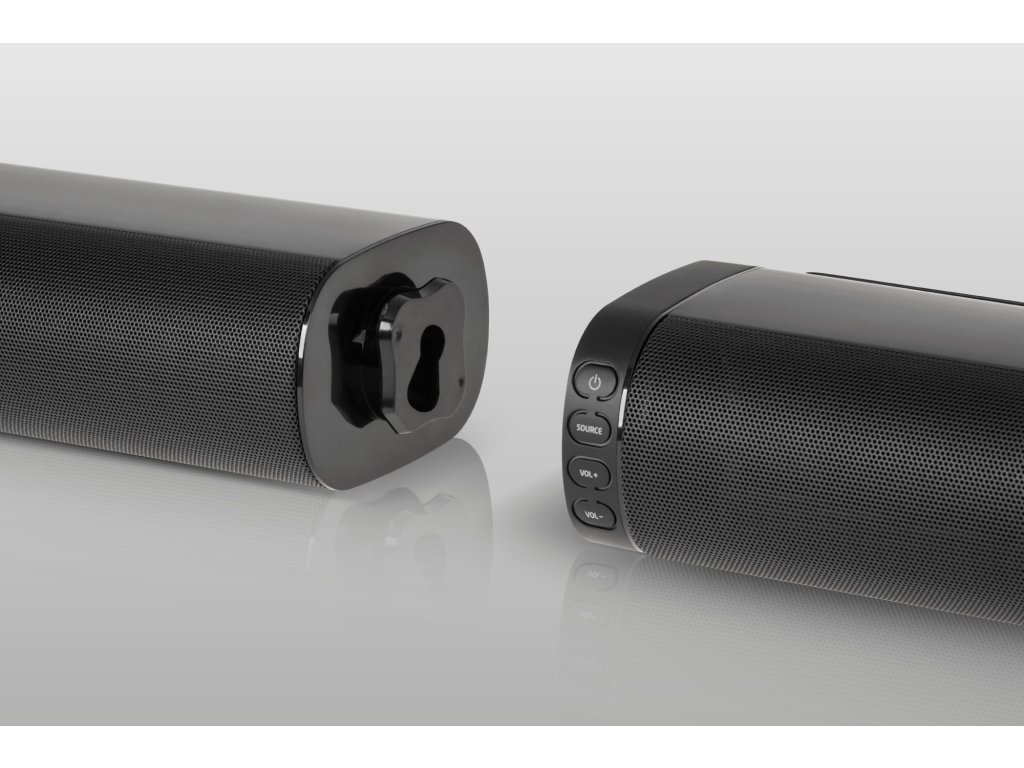 Dimenzije: 800 x 62 x 94 mm (zvočna vrstica), 122 x 150 x 417 mm (zvočna vrstica na podstavkih)