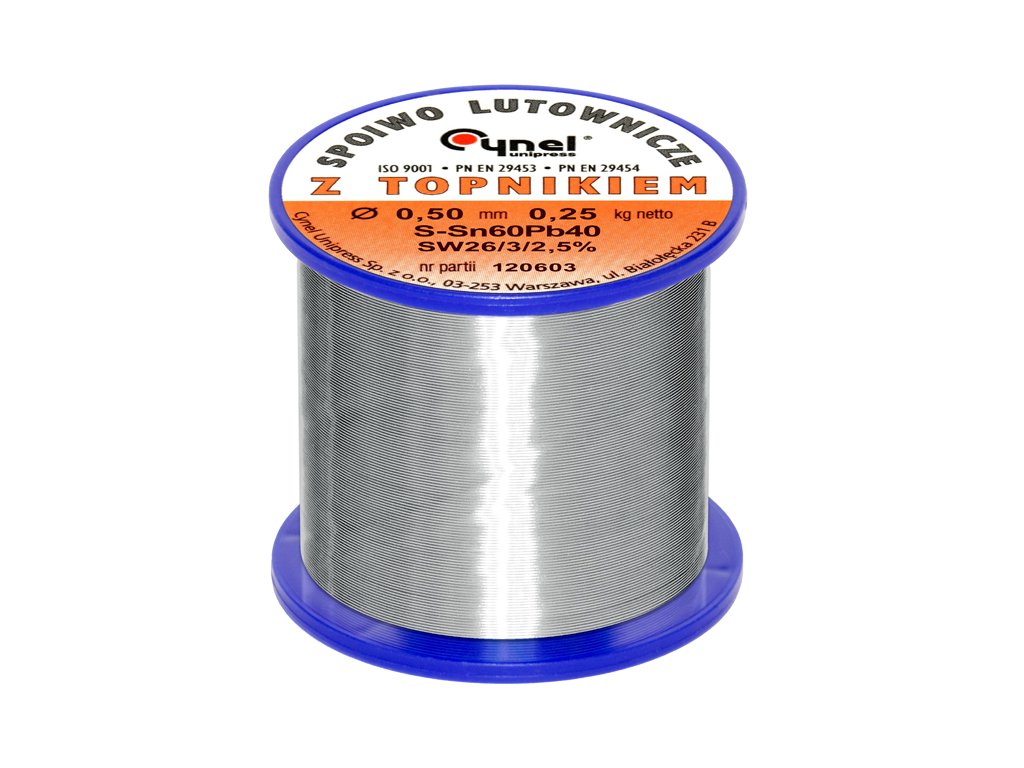 Stop S-Sn60Pb40, izdelan v prvem taljenju kositra in svinca, v neprekinjenem postopku ulivanja brez dostopa zraka, nato iztiskan, kar zagotavlja odpravo pojava oksidov. Spajkalna zlitina CYNEL se uporablja predvsem v elektronski industriji, za proizvodnjo standardnih naprav in elektronskih komponent, v elektrotehniki ter za spajkanje elementov s kositrnimi, kositro-svinčenimi, kadmovimi, cinkovimi in srebrnimi prevlekami.SPECIFIKACIJA: