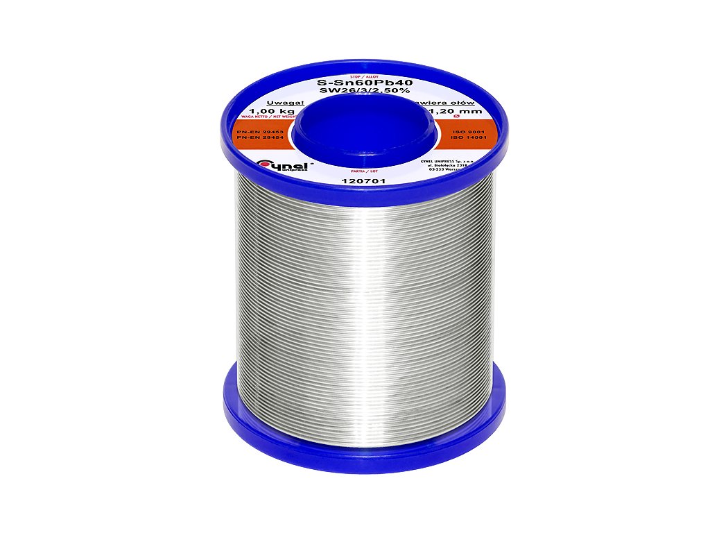 Stop S-Sn60Pb40, proizveden v prvem taljenju kositra in svinca, v neprekinjenem postopku litja brez dostopa zraka, nato je bil stisnjen, kar zagotavlja odpravo oksidov. Spajkalna zlitina CYNEL se uporablja predvsem v elektronski industriji, za proizvodnjo standardnih naprav in elektronskih komponent, v elektrotehniki ter za spajkanje elementov s kositrnimi, kositrno-svinčevimi, kadmijskimi, cinkovimi in srebrnimi oblogami.SPECIFIKACIJA: