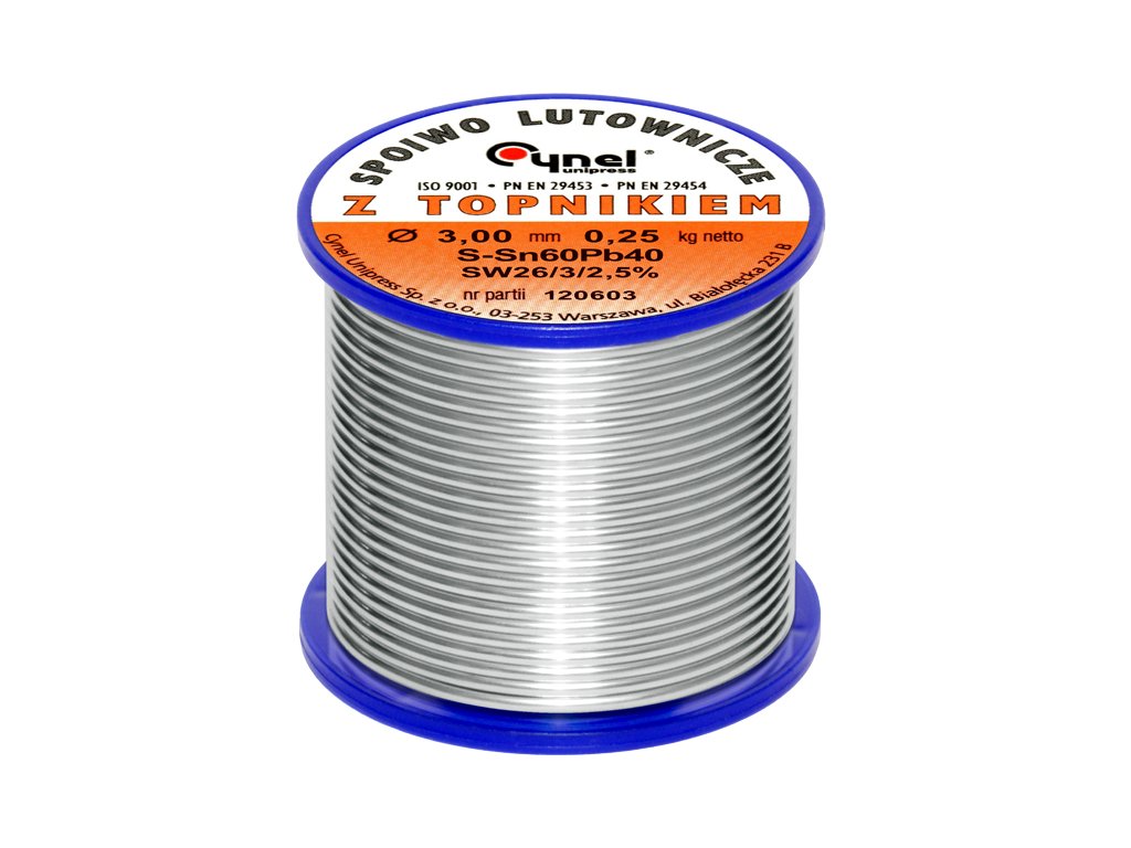 Stop S-Sn60Pb40 proizveden v prvi talilnici kositra in svinca, v neprekinjenem postopku litja brez dostopa zraka, nato ekstrudiran, kar omogoča odpravo oksidov. Spajkalna zlitina CYNEL se uporablja predvsem v elektronski industriji, za proizvodnjo standardnih naprav in elektronskih komponent, elektrotehniko ter za spajkanje elementov s kositrnimi, kositrno-svinčevimi, kadmijevimi, cinkovimi in srebrnimi premazi.SPECIFIKACIJA:
