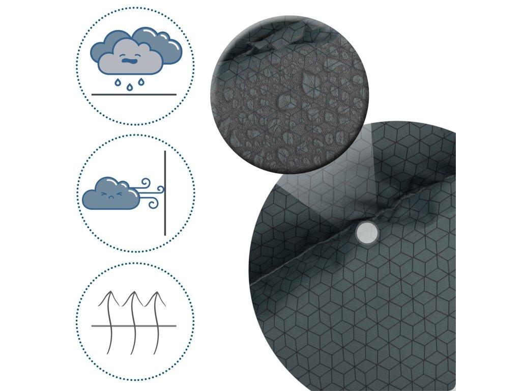 - Zgornja plast zagotavlja popolno nepremočljivo in odpornost proti vetru.