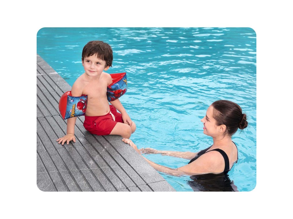Otroške plavalne rokavčke Bestway so dvokomorne, kar otroka varno ohranja na vodi. Njihove dimenzije so 23 x 15 cm.