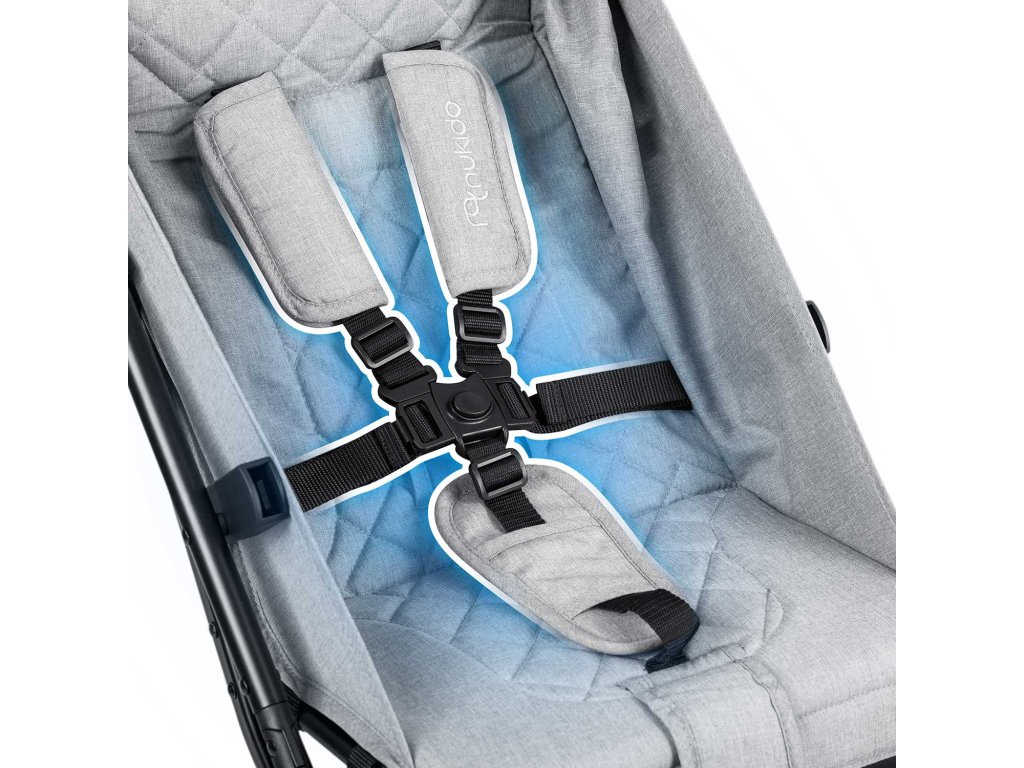 Pettočkovni varnostni pasovi z zračnimi blazinami. Ta sistem varnostnih pasov zagotavlja optimalno varnost za otroka v vozičku.