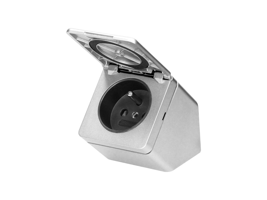 Srebrna vtičnica s pokrovom za pohištvo, IP44