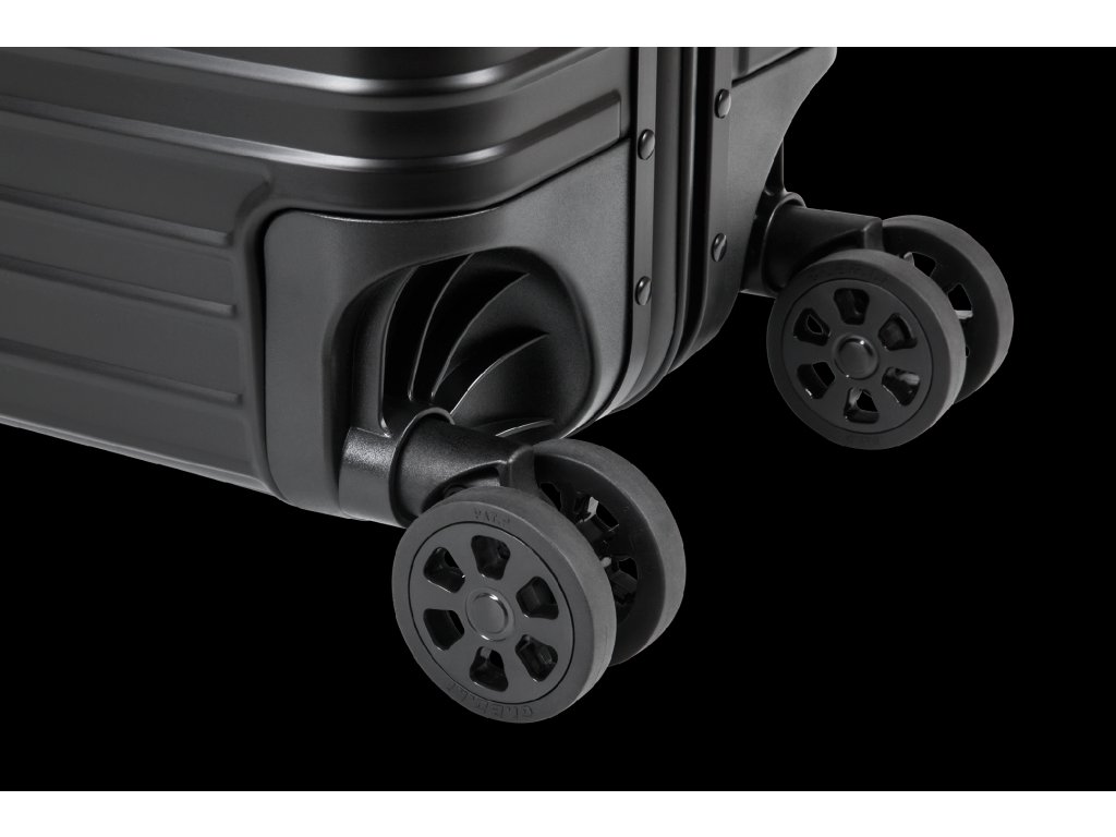Izberite model, ki je idealen za vas. Na voljo imate dve barvi – srebrno ali črno in tri velikosti - velik, srednji in idealen za letalo, kabinski kovček. Vtis na sopotnikih bo zagotovo naredil tudi moderni dizajn, ki ga poudarjajo z okrasnimi nitmi opremljeni aluminijasti vogali.Barva: Črna
