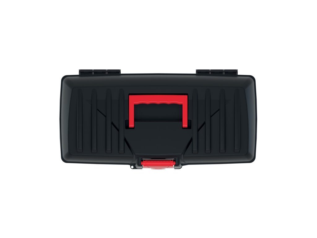 - Organizator z odlagalnimi predali: Vgrajen organizer vam omogoča, da pregledno shranjujete in razvrščate majhne dele, kot so vijaki, matice, žeblji ali drobnarije, ki bi se sicer lahko izgubile v množici orodja.