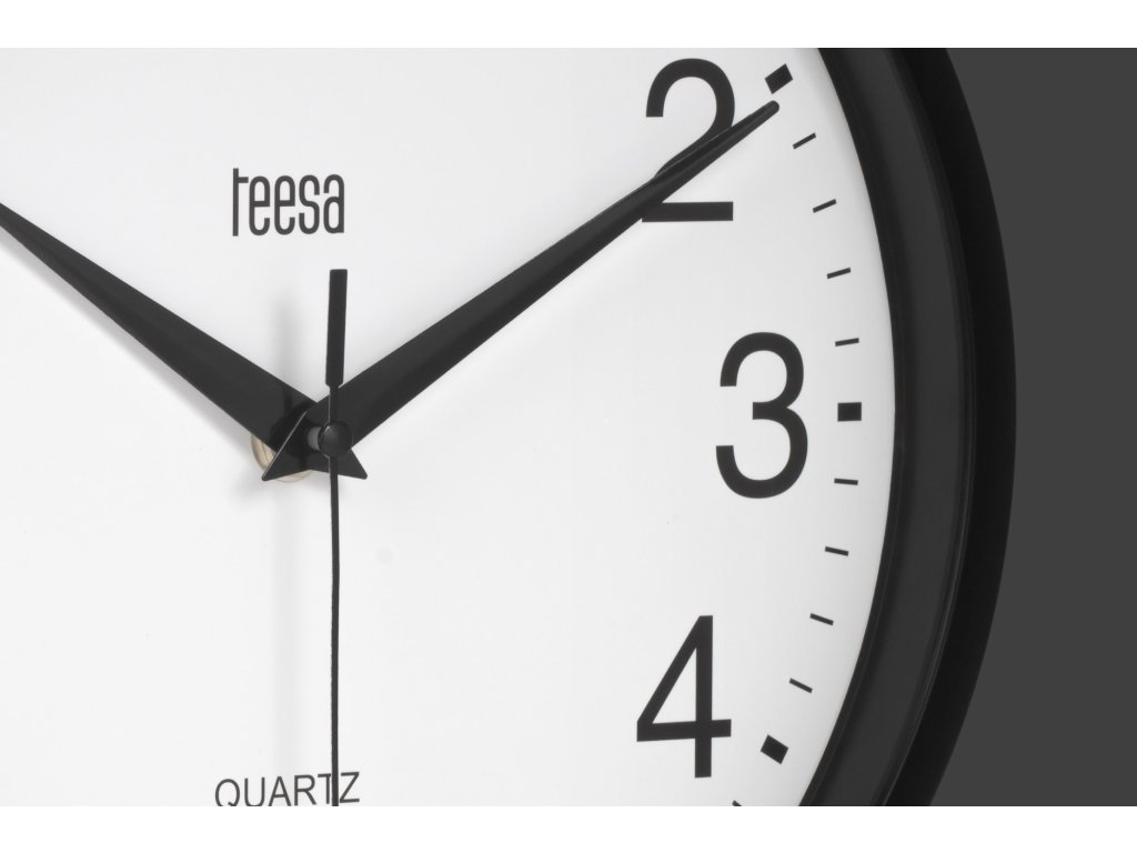 Majhne stenske ure Teesa TSA0037B so odlična izbira za tiste, ki cenijo preprostost, funkcionalnost in eleganten videz. Še toliko bolj, ker imate na izbiro dve barvni različici - belo in črno, tako da uro lahko prilagodite tako klasičnemu kot tudi sodobnemu notranjemu oblikovanju vašega prostora.