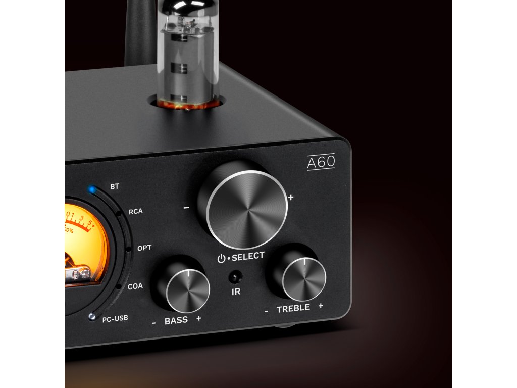Tisto, kar privlači pozornost ojačevalnika A60, je njegov analogni kazalnik, ki omogoča vizualno oceno nivoja zvoka. Ta tradicionalni element omogoča ne le spremljanje nivoja avdio signala v realnem času, ampak napravi dodaja tudi retro dizajn.