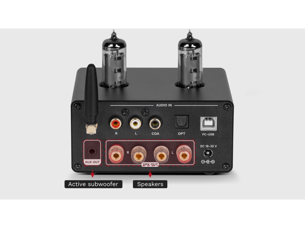Prilagodite konfiguracijo zvoka glede na svoje preference! Izhod za zvočnike na zadnjem pokrovu omogoča priključitev ojačevalnika na zvočnike. AUX izhod pa omogoča priključitev nizkotonskega zvočnika.