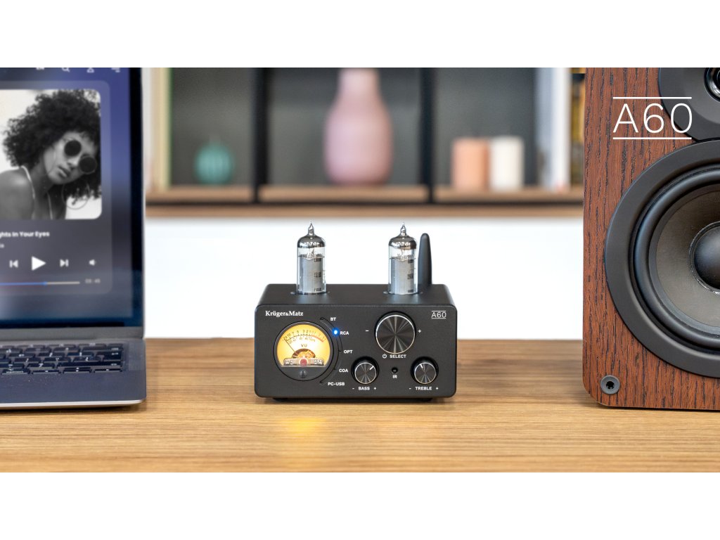 Kruger&Matz A60 vam ponuja širok nabor možnosti. Naprava je opremljena z RCA, koaksialnimi in optičnimi vhodi ter USB-B priključkom. Številni priključki na zadnji plošči vam pomagajo ustvariti lasten napredni avdio sistem.