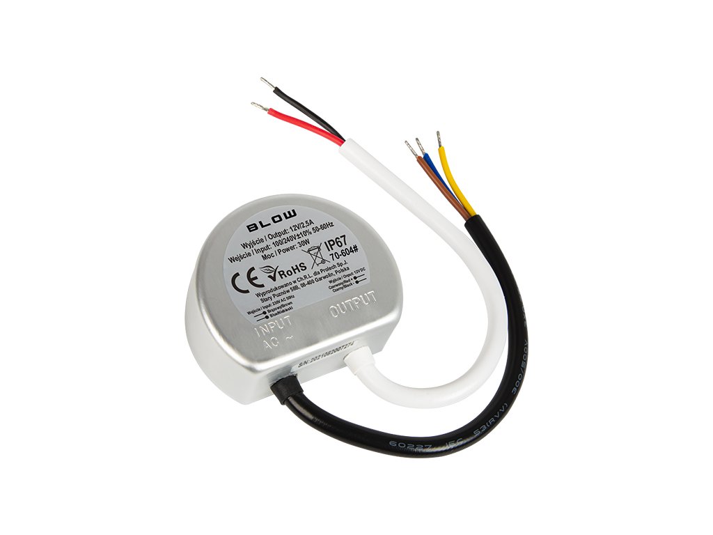 Specifikacija:Vhodna napetost: 100-240V +/-10%, 50-60HzIzhodna napetost: 12V / 2,50AMoč: 30WRazred zaščite: IP67Material ohišja: aluminijCertifikati: CE, RoHS Dimenzije: 58mm x višina 47mm x debelina 25mmDolžina kabla: 15cm Nepremočljiv napajalnik s stikali za možnost namestitve v podometne doze. Idealno za napajanje trakov in LED modulov, plošč, letev ali LED žarnic, kot tudi za številne druge elektronske naprave, napajane z napetostjo 12V. Najpomembnejše prednosti: - Širok razpon vhodnih napetosti - Visoka kakovost izdelave- Trpežno aluminijasto ohišje- Potrebni varnostni certifikati- Širok razpon uporab- Razred zaščite: IP67- Idealno za doze Ø60Additional parameters