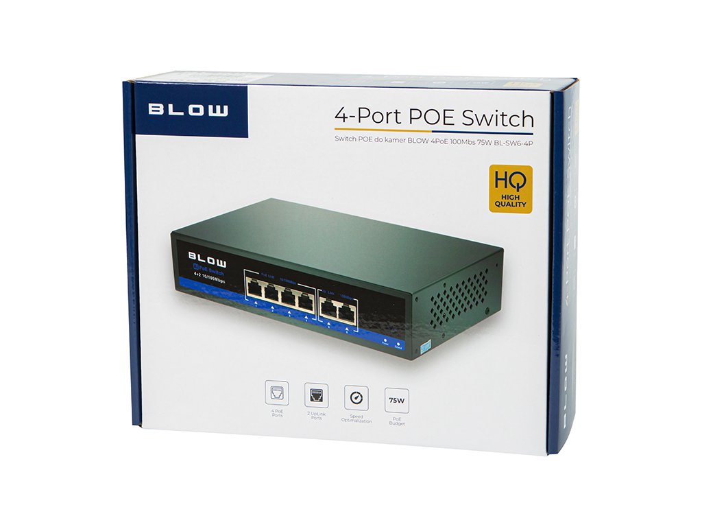 Stikalo POE za kamere BLOW 4PoE 100Mbs 75W BL-SW6-4P