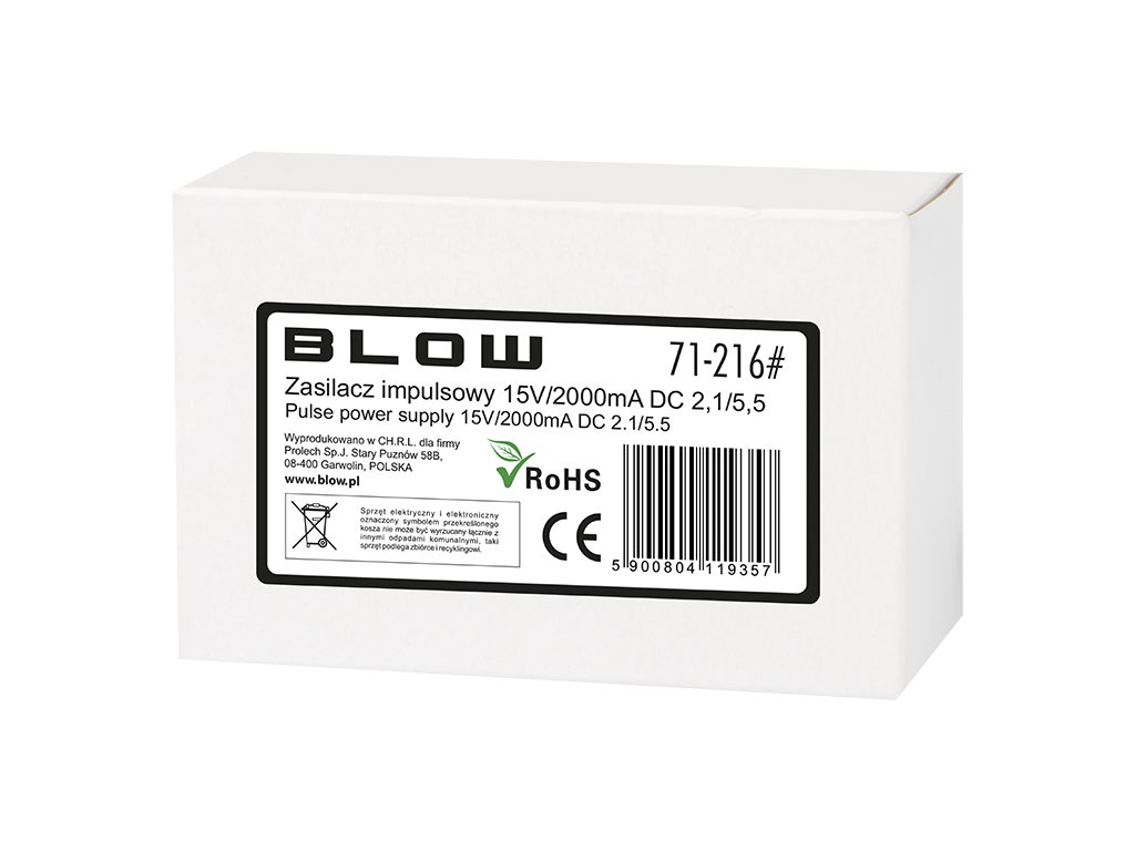 Impulzni napajalnik 15V 2000mA namenjen za domačo uporabo. Idealen za vse vrste elektronskih naprav, ki zahtevajo napetost 15V z maksimalno obremenitvijo 2A ter ustreznim priključkom.