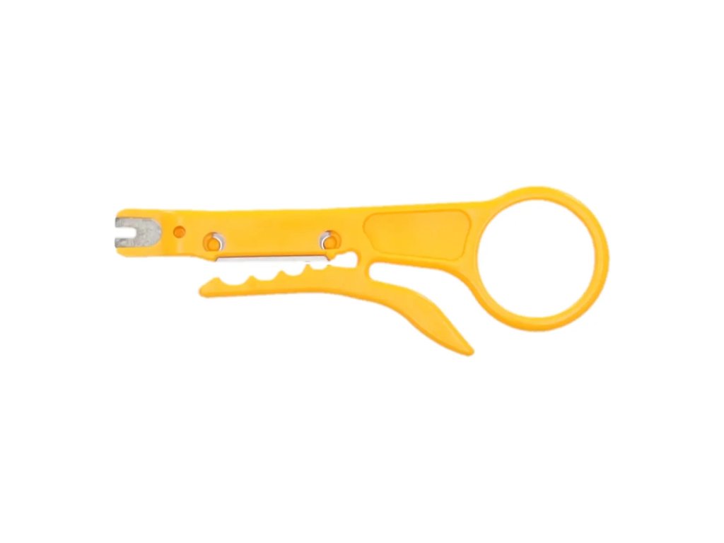 Uporabljajo se za stiskanje mrežnih in telefonskih priključkov. Gumirani ročaji za večje udobje pri uporabi. Del kompleta je tudi rezalnik kablov.Lastnosti: