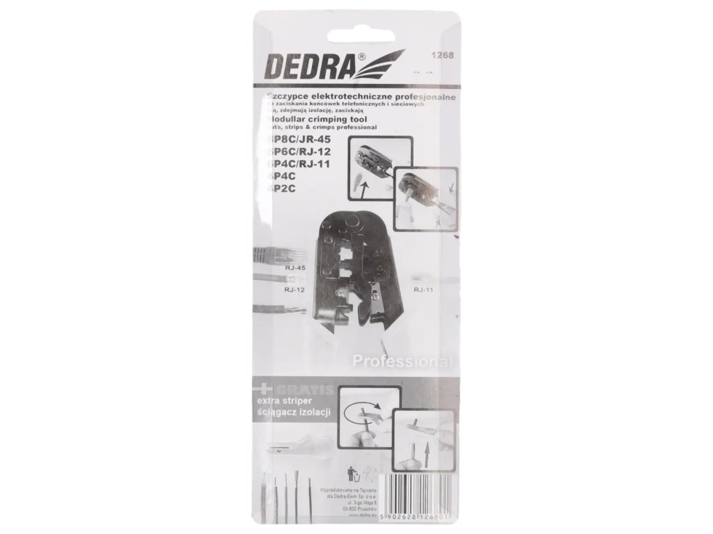 | Ďalšie informácie: | RJ-45 8P8C, RJ-45 6P6C, RJ-12 6P4C, RJ-11 4P4C, RJ-11 4P2C |