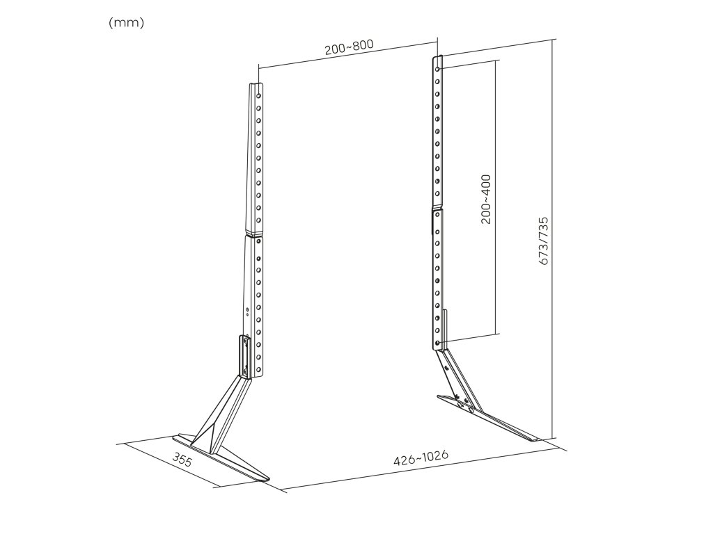 Obseg višine televizorja: 673 / 735 mm