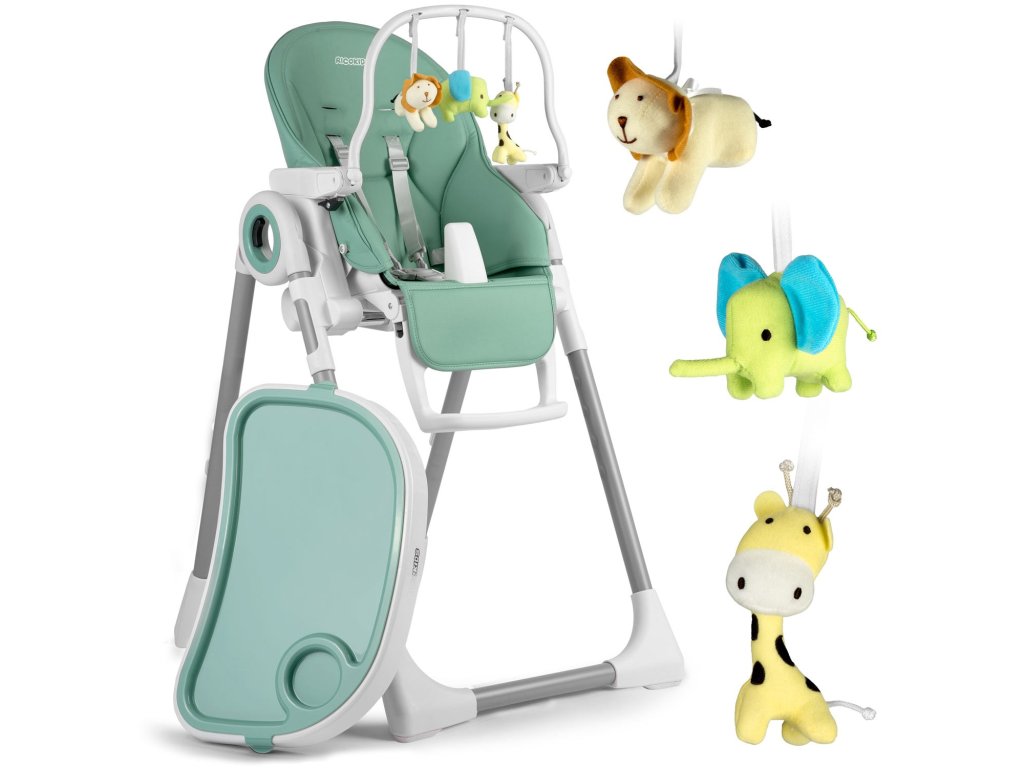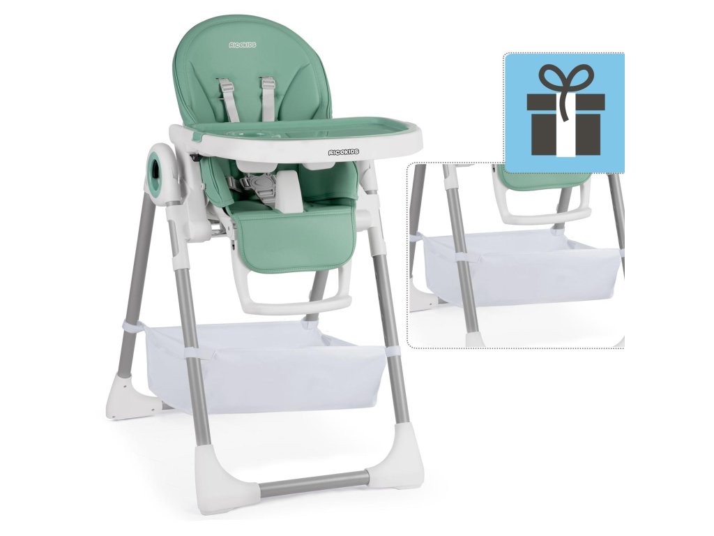 Stolček za hranjenje s pladnjem, ležalnik Belo zeleno + lok