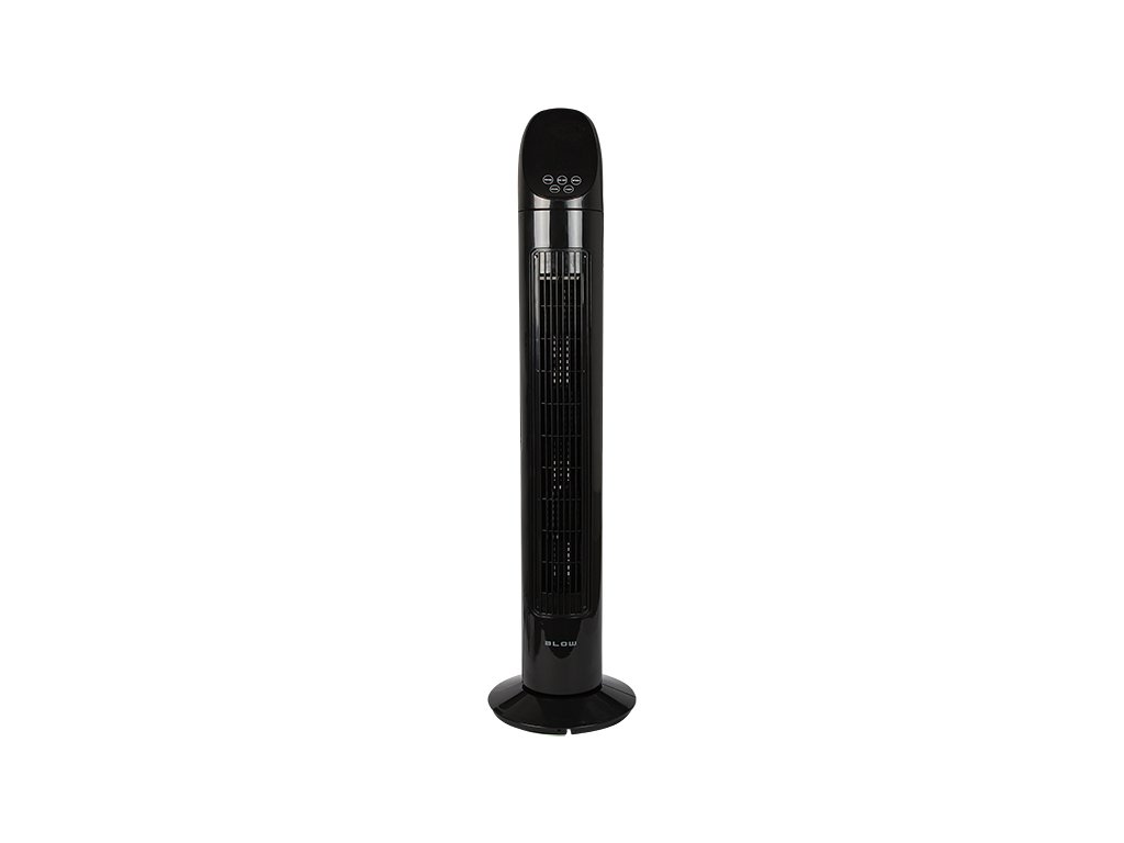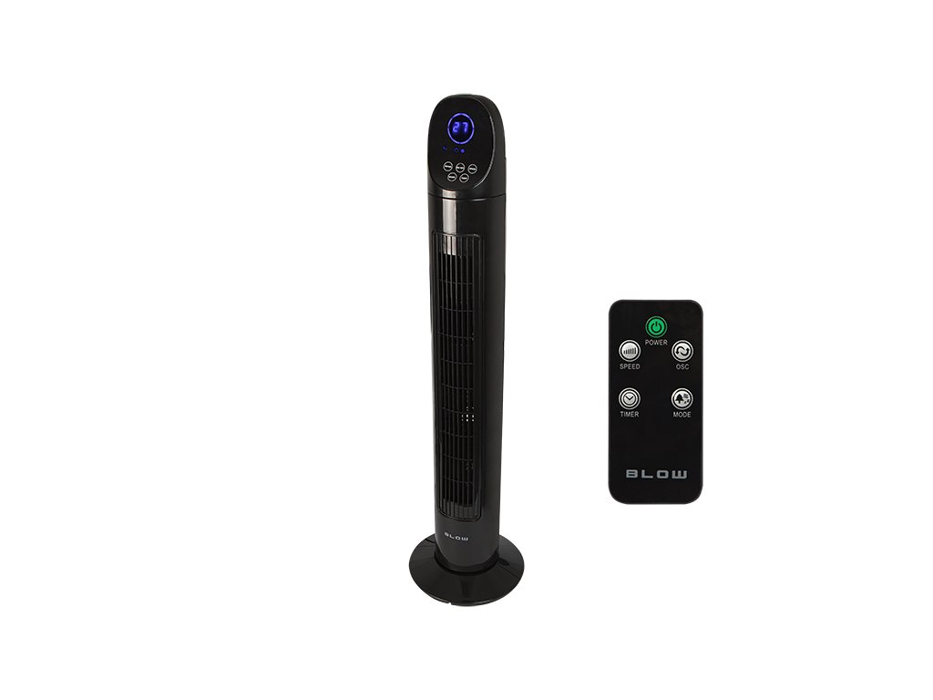 Stolpni ventilator BLOW Tower Fan z močjo 90 W je nepogrešljiva naprava v poletni vročini. Idealno bo deloval doma ali v pisarni. Ventilator ima kar 3 delovne stopnje in funkcijo nihanja, zaradi katere smo prepričani, da bo zrak krožil po celotnem prostoru. Uporaba zaprtega ohišja skrbi za varnost naših otrok, saj ne bodo mogli vtakniti prstov ali drugih predmetov, ki bi lahko ogrozili njihovo zdravje. Ventilator je opremljen s funkcijo, ki omogoča nastavitev delovnega časa naše naprave, zaradi česar bo še bolj funkcionalen kot običajni ventilatorji. Na dotik intuitivna nadzorna plošča in daljinski upravljalnik omogočata, da je uporaba ventilatorja enostavna in prijetna. Izdelek ima stikalo za vklop/izklop nihanja, kar omogoča nastavitev pihanja zraka na enem izbranem mestu. Tehnične specifikacije:- Nadzorna plošča na dotik