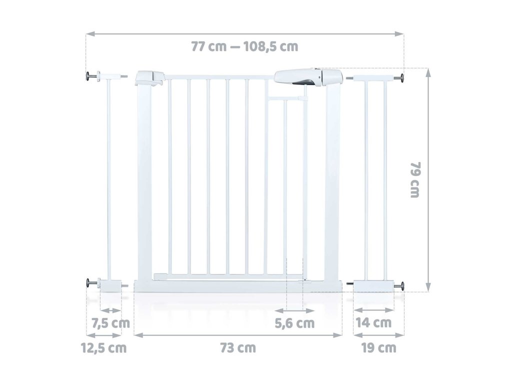Nastavljiva širina omogoča namestitev v vratnih okvirjih in prehodih od 77 do 108,5 cm.