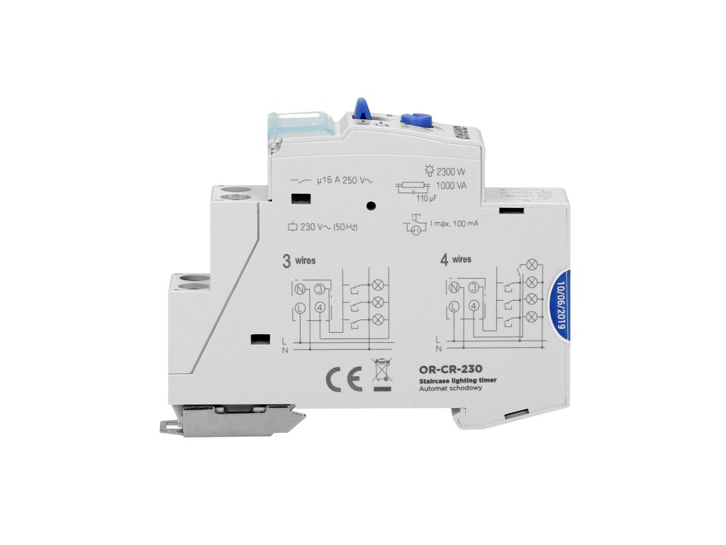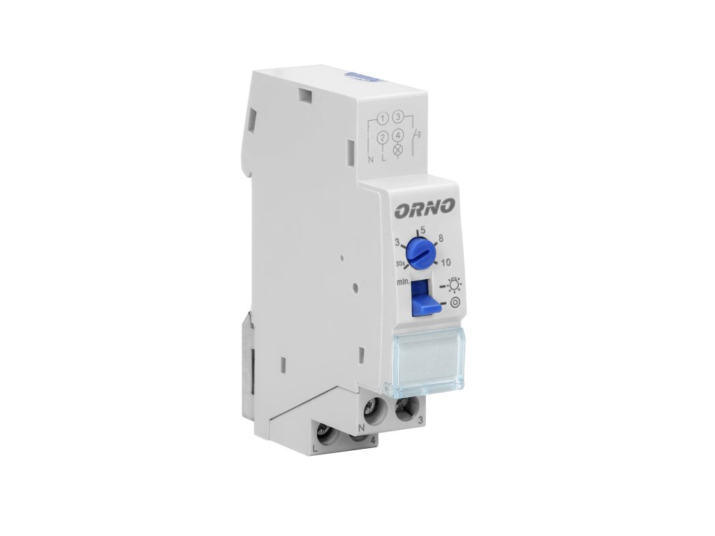 Časovnik se uporablja za ohranjanje osvetlitve na hodnikih, stopniščih, prehodih, upravnih zgradbah in hotelih ali drugih objektih za določen čas, po katerem se luči samodejno ugasnejo. Nastavljiv delovni čas: 30 sek.-20 min. Dva načina delovanja - neprekinjen ali začasen. 3- ali 4-žilna namestitev 1-modularna namestitev ohišja na standardno DIN letev Sodeluje z LED razsvetljavo.