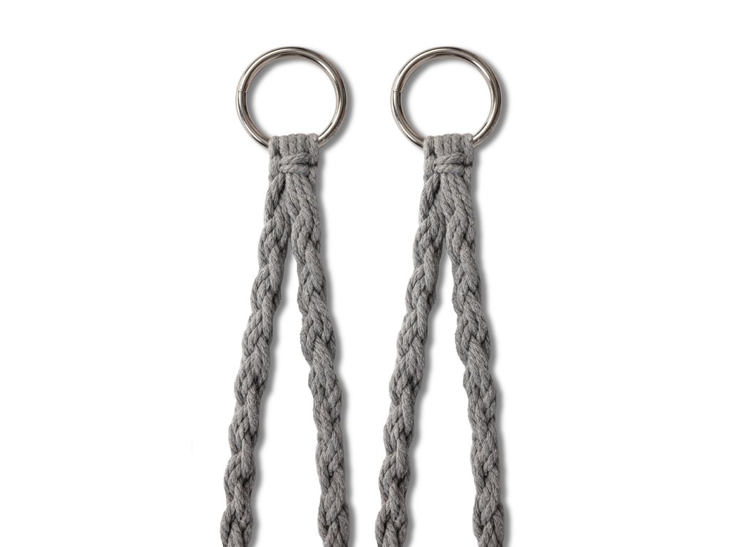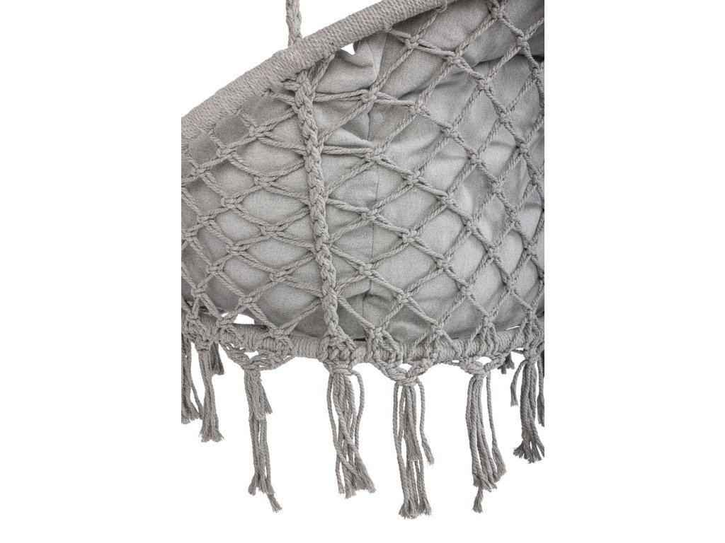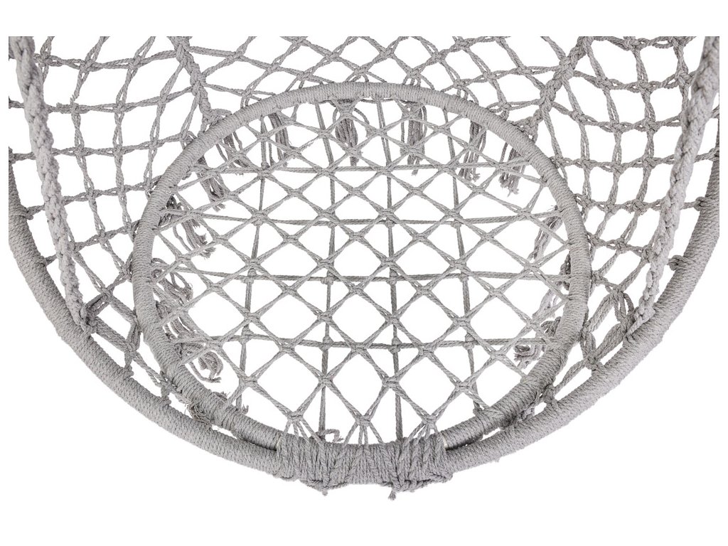 Material: bombažne vrvi, kovinski okvir, blazina iz bombaža in poliestra
