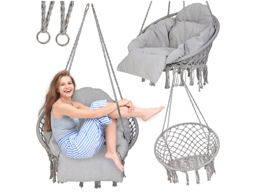Ustvarjena je bila z mislijo na vaše udobje, zagotavlja popoln položaj telesa in mehka blazina še bolj poveča užitek guganja. Njena svetla barva ne le poudari čar vašega vrta, ampak postane tudi izrazit dodatek vašega domačega interierja. Gugalnica je izdelana iz trpežnih materialov in opremljena z močnimi vrvmi, zaradi česar brez težav zdrži težo do 120 kilogramov.