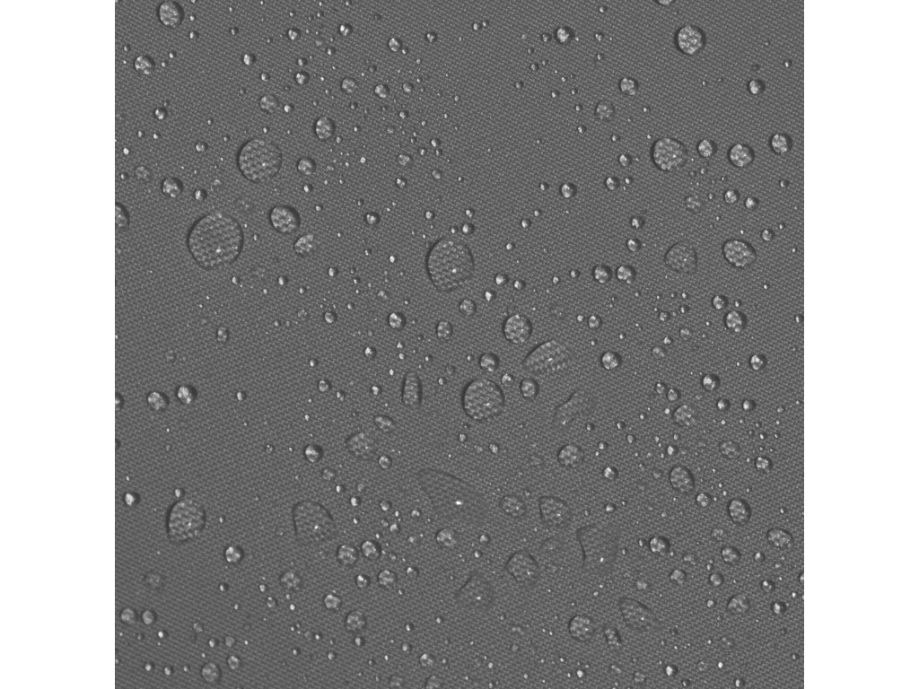 - Poliesterska tkanina z dodatnim brezbarvnim PU (poliuretanskim) premazom je vodoodporna, nenategljiva in odporna proti obrabi.
