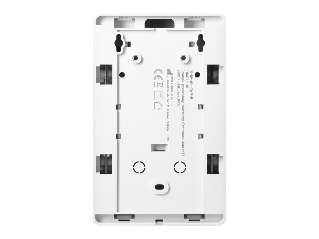 Ožičeni, dvobarvni zvonec je enostaven za namestitev in udoben za uporabo. Elektromehanski zvonec s funkcijo zaščite pred blokiranjem - zaščiten pred poškodbami zaradi prisilnega neprekinjenega delovanja. Naprava za uporabo v zaprtih prostorih z zvončno napeljavo na 230V AC, npr. v hiši, stanovanju, trgovini itd.Zvonec oddaja dva klasična tona ding-dong z glasnostjo 80 dB. Ohišje naprave je izdelano iz plastike.