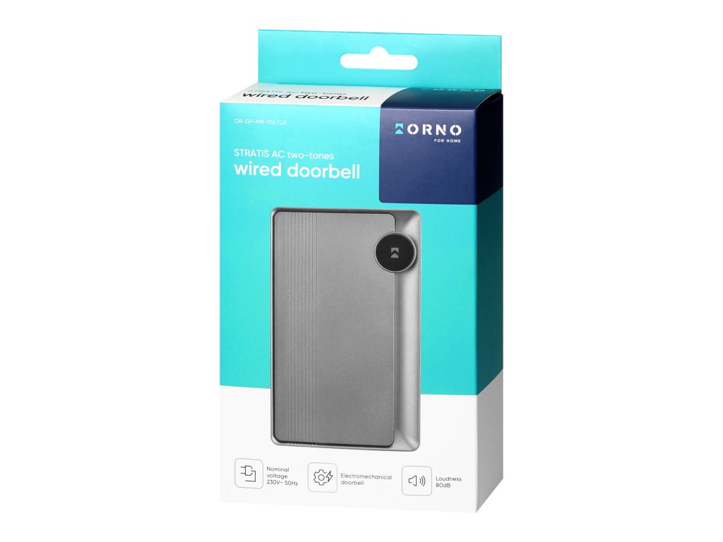 Žični, dvobarvni zvonec je enostaven za namestitev in udoben za uporabo. Elektromehanski zvonec s funkcijo zaščite proti zaklepanju stikala - zaščiten pred poškodbami zaradi prisilnega neprekinjenega delovanja. Naprava je namenjena uporabi v zaprtih prostorih z zvončno napeljavo na 230V AC, npr. v hiši, stanovanju, trgovini itd.Zvonec oddaja dva klasična ding-dong tona z glasnostjo 80 dB. Ohišje naprave je izdelano iz plastike.