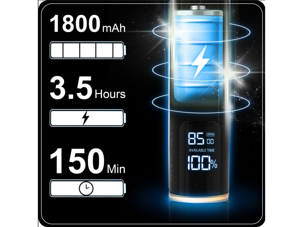 - Do 2,5 ure dela — Li-Ion baterija s kapaciteto 1800 mAh, zagotavlja dolgo in nemoteno delo, brez prekinitve za polnjenje.