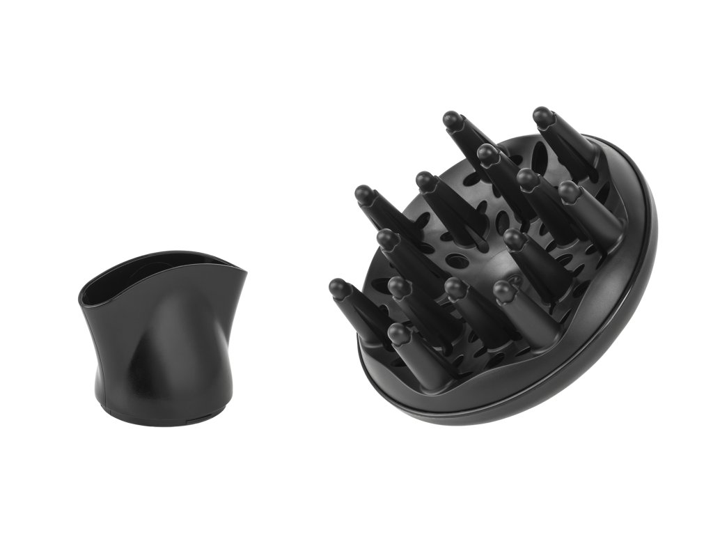 V kompletu je difuzor, ki razprši zrak med lasmi, povečuje njihov volumen in daje valovitost. Medtem koncentrator omogoča natančno usmerjanje zraka na izbrane pramene las.