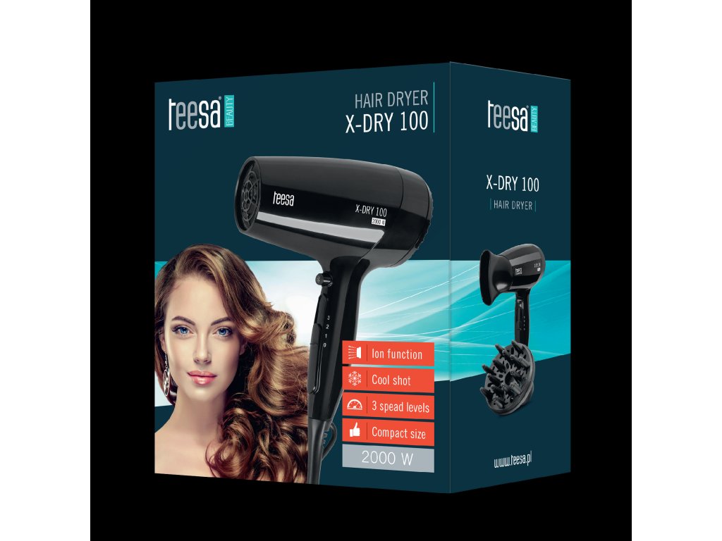 Gre za lahko in priročno napravo z močjo 2000 W, ki omogoča hitro in učinkovito sušenje las. X-DRY 100 ponuja možnost izbire 3 hitrosti pihanja, kar omogoča popoln nadzor nad sušenjem in oblikovanjem las. Za utrditev pričeske bo prav prišel hladen zrak, funkcija ionizacije pa poskrbi, da se lasje ne naelektrijo, so bolj gladki in izgledajo zdravo.
