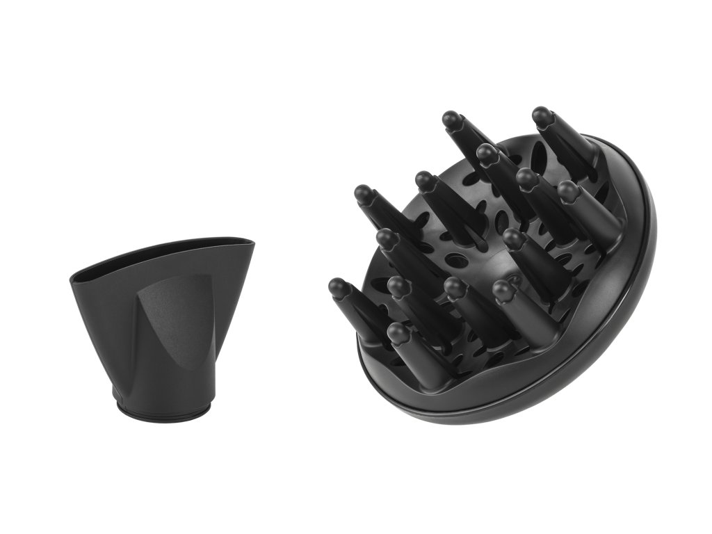 V kompletu je difuzor, ki razprši zrak v lase in poveča njihov volumen, ter jim doda valovitost. Medtem koncentrator pihanja omogoča natančno usmeritev zraka na izbrane pramene las.