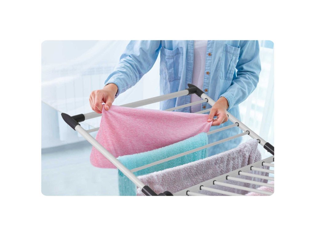 Zaradi primernih razmikov med vrsticami se voda hitro izhlapi, perilo pa bo enakomerno posušeno in pripravljeno za zlaganje!