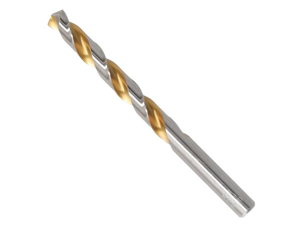 Kovinski vrtalnik s cilindričnim steblom. Vrtalnik iz hitroreznega jekla HSS (jeklo 4341). Brušena žleba zagotavlja učinkovit odvod materiala iz luknje.