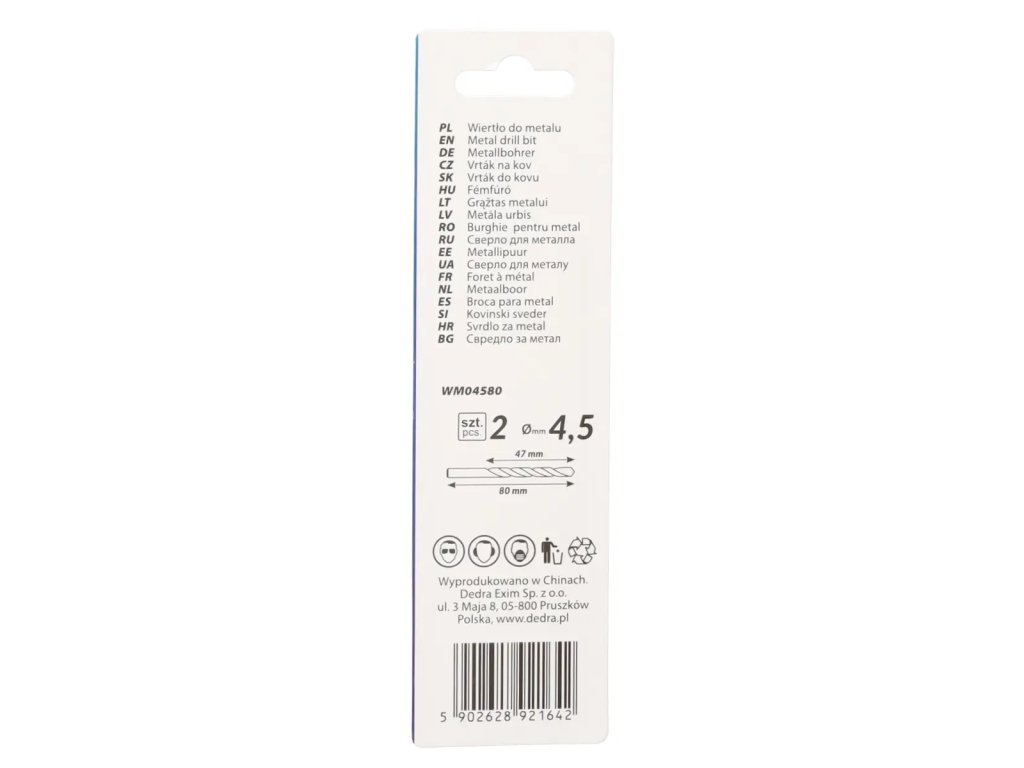 Sveder za kovino 2 kosa, HSS, DIN338, 4,5x70mm WM04580