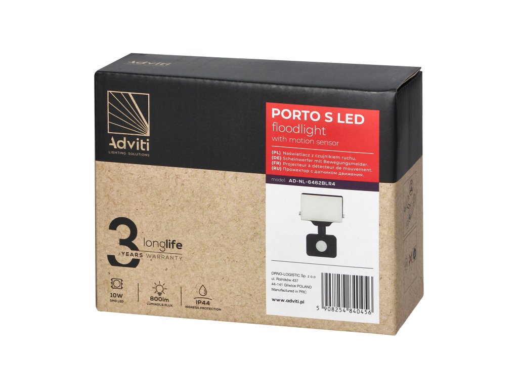 Brezokvirni LED žaromet PORTO S s senzorjem gibanja je 10W izdelek s svetlobnim tokom 800lm. Zaradi tega zagotavlja močno in jasno svetlobo, ki je idealna za uporabo na številnih mestih, vključno z zunanjostjo.Naprava je izdelana iz neuničljivega aluminija in plastičnega difuzorja. Izboljšana raven zaščite IP44 pomeni, da je žaromet zaščiten pred prahom in vodo, zato je idealen za zunanjo uporabo.