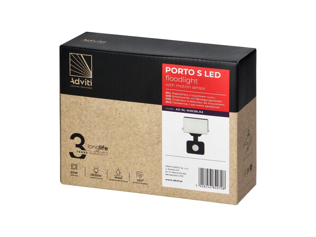 Brezokvirni LED žaromet PORTO S s senzorjem gibanja je 20W izdelek s svetlobnim tokom 1600lm. Zato zagotavlja močno in jasno svetlobo, ki je idealna za uporabo na mnogih mestih, vključno z zunanjostjo.Naprava je izdelana iz nelomljivega aluminija in plastičnega difuzorja. Izboljšana raven zaščite IP44 pomeni, da je žaromet zaščiten pred prahom in vodo, zaradi česar je idealen za zunanjo uporabo.