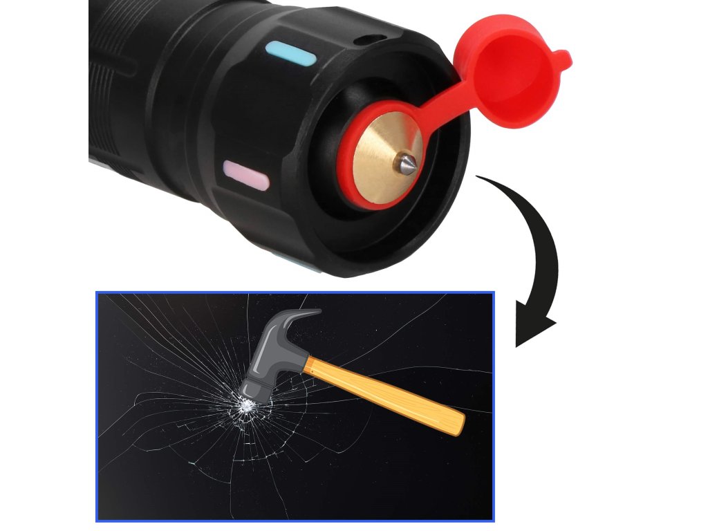 - Konec svetilke z ostrim zaključkom zaščiten z rdečim, silikonskim pokrovom - možnost razbitja česa