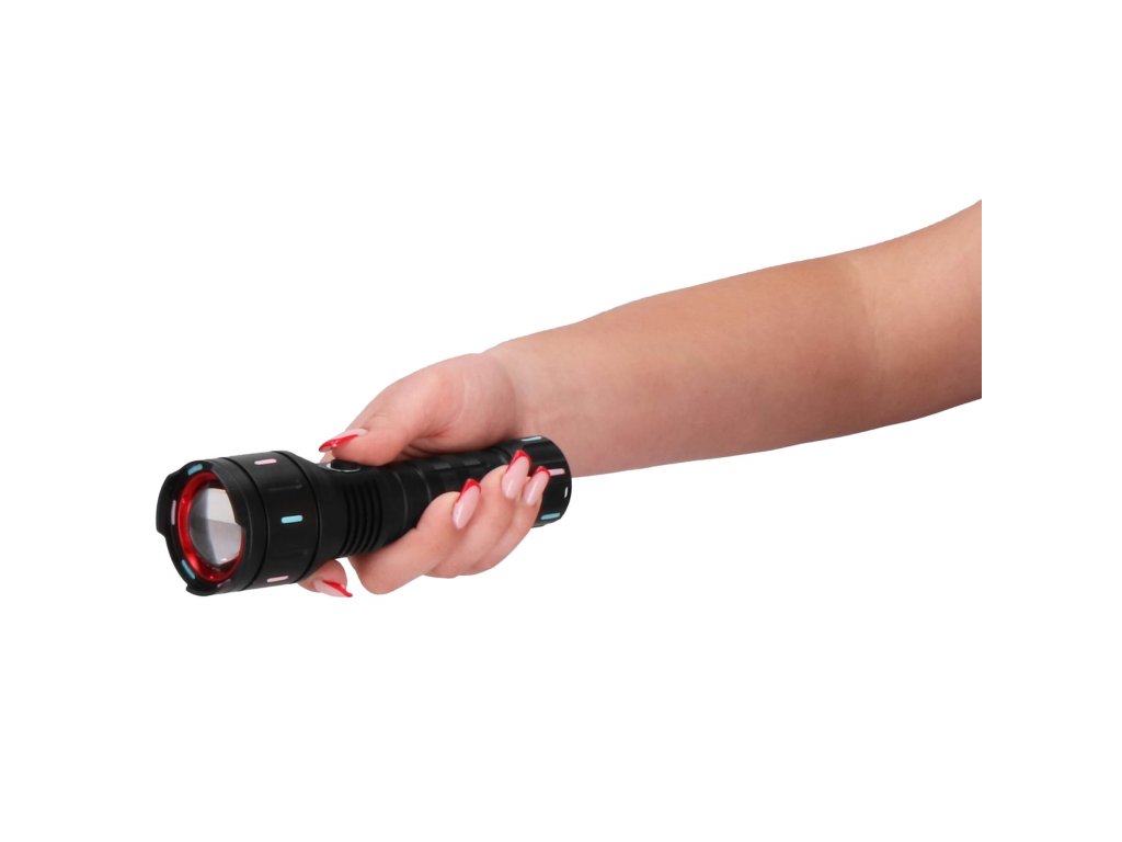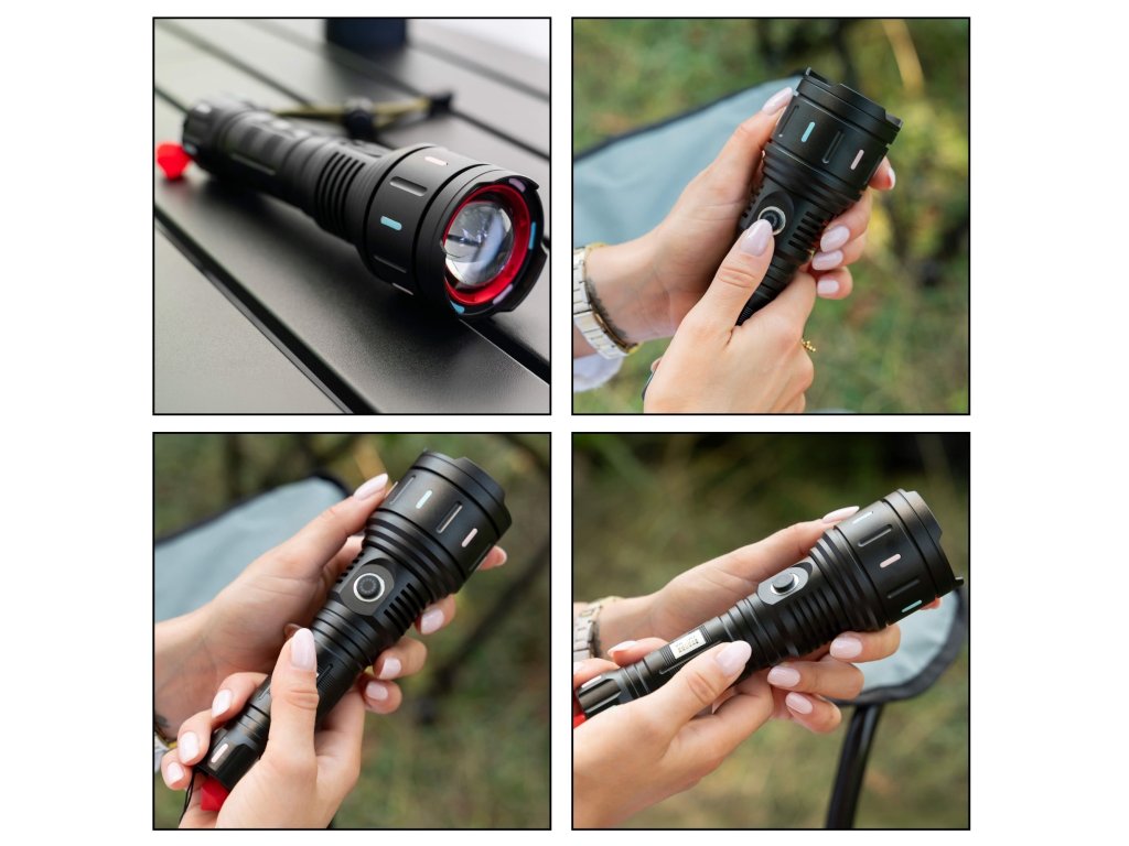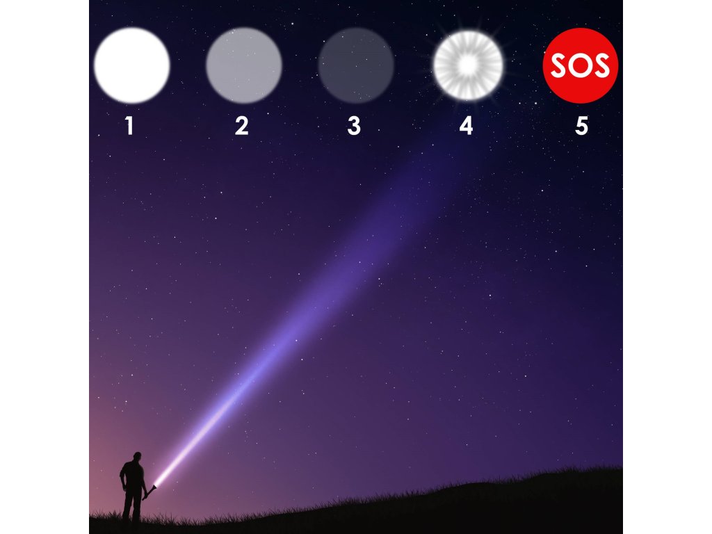 - Možnost polnjenja svetilke z USB kablom - LED dioda ON/OFF sveti rdeče, prikazuje raven napolnjenosti
