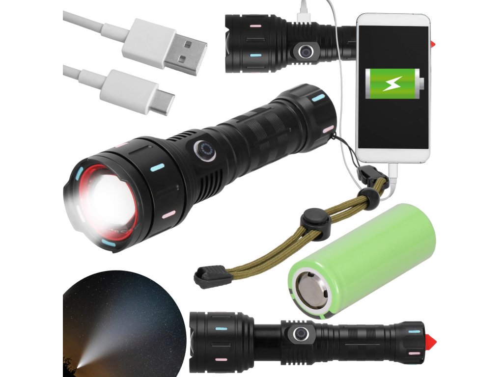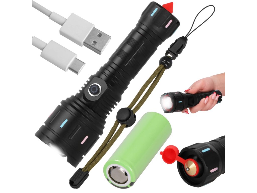 - V kompletu: svetilka, baterija, USB kabel, pašček