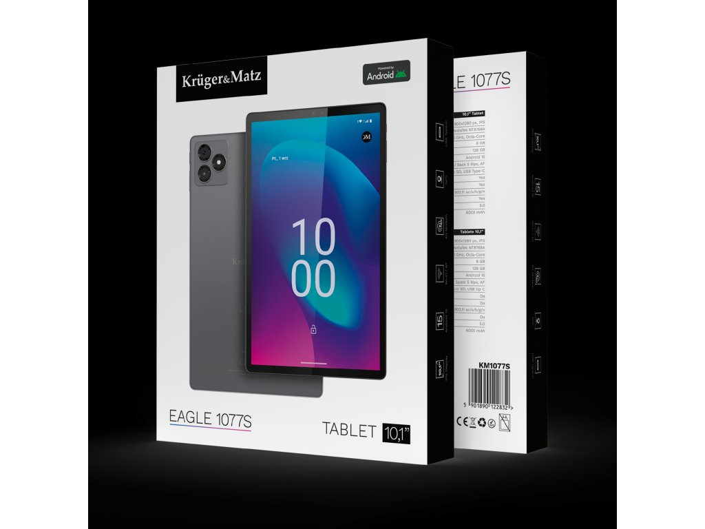 Potrebujete napravo, ki sledi vašemu tempu Tablični računalnik Kruger&Matz EAGLE 1077 je naprava, ki se bo izkazala tako pri delu kot v prostem času. Brskate po internetu, pišete e-pošto, sodelujete na video sestankih ali gledate serije S to tablico boste to storili hitro in udobno – kjerkoli že ste, z dostopom do LTE in Wi-Fi.