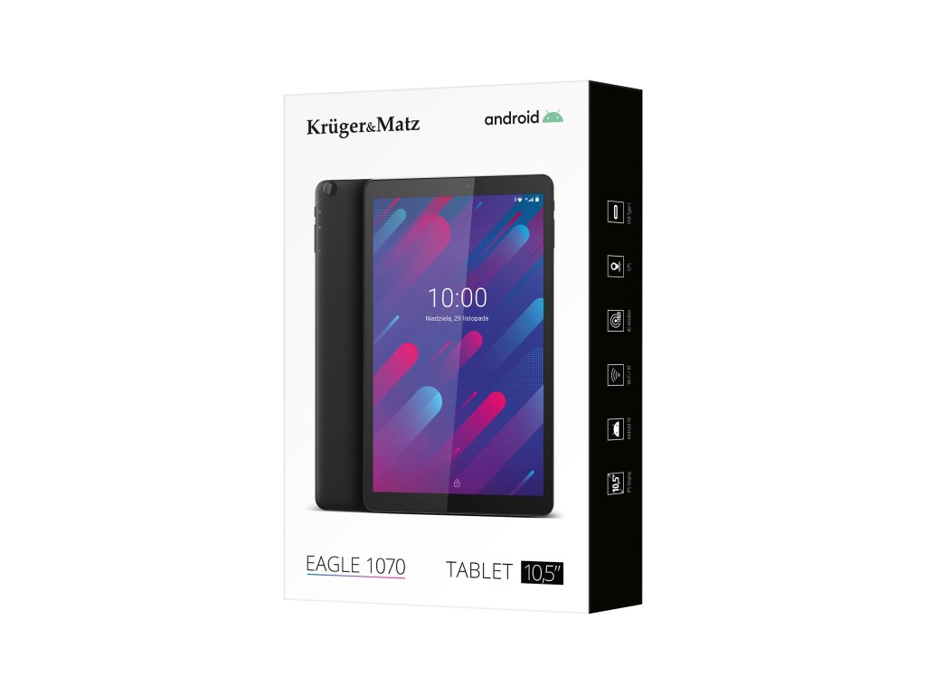 Kruger&Matz EAGLE 1070 ni le bogata notranjost - naprava je tudi na zunaj enako privlačna. Tanek črni ovoj bo všeč vsakomur. Poleg tega je tablični računalnik lahek in zato udoben za uporabo. Uporabljati ga je pravo zadovoljstvo.