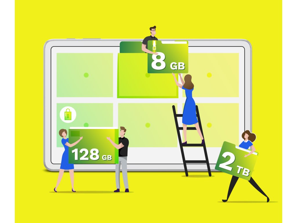 Aplikacije za učenje, zabavo, delo in zdravje. Poleg tega imate na voljo obširno fotogalerijo in več map za pomembne datoteke. S tablico EAGLE 1073 lahko imate vse stalno pri sebi, saj ima ta tablica do 128 GB notranjega pomnilnika, ki ga je mogoče razširiti do 2 TB s kartico micro SD.