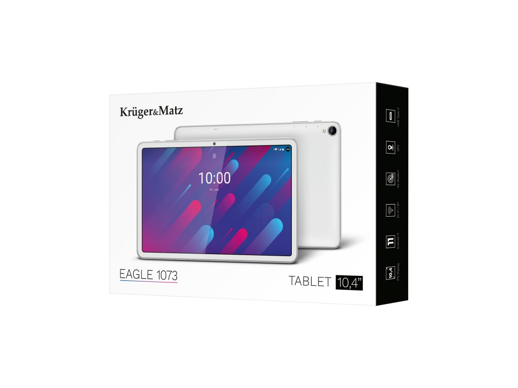 Izkoristite polni potencial Kruger&Matz EAGLE 1073! Ni pomembno, ali potrebujete tablico za igre, brskanje po spletu, gledanje filmov ali učenje na daljavo. Ta model je opremljen z velikim, 10,4-palčnim zaslonom z ločljivostjo Full HD+, ki bo presegel vaša pričakovanja in vam zagotovil veliko zabave na maksimum!