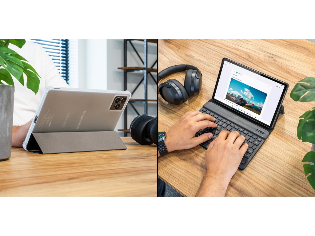 Želite še udobneje pisati e-pisma ali ustvarjati dokumente Za tablični računalnik lahko dokupite etui s tipkovnico, ki ne le ščiti napravo pred poškodbami, temveč vam omogoča udobno delo – v pisarni, na poti in doma.