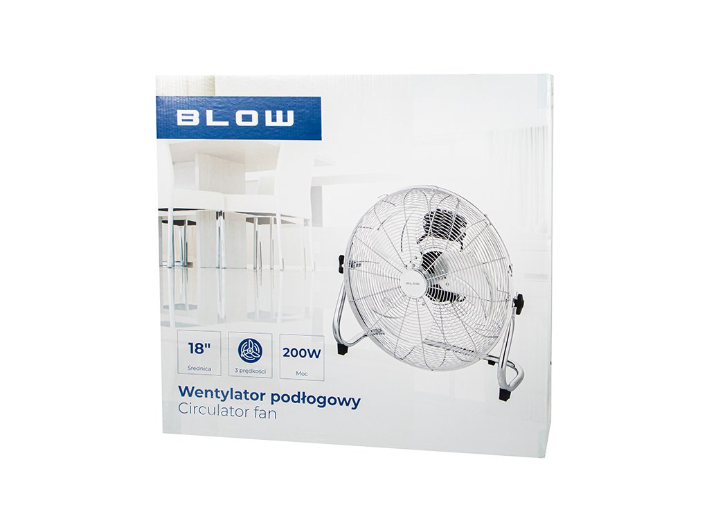Talni ventilator BLOW z izjemno močjo 200W je nepogrešljiva naprava med poletno vročino. Odlično se obnese doma ali v pisarni, zaradi svoje moči ga je mogoče uporabljati tudi na večjih površinah. 45-centimetrski ventilator nas bo lahko ohladil tudi v najbolj vročih dneh. Ventilator lahko prilagodimo svojim potrebam in željam zahvaljujoč tristopenjski regulaciji moči in možnosti nastavitve kota nagiba. Ventilator je nameščen v ohišju, ki zagotavlja varnost pred nenamernim vstavljanjem prstov ali drugih predmetov v rotor ventilatorja. Močna in stabilna konstrukcija ventilatorja je odporna na poškodbe, ki lahko nastanejo zaradi udarcev.