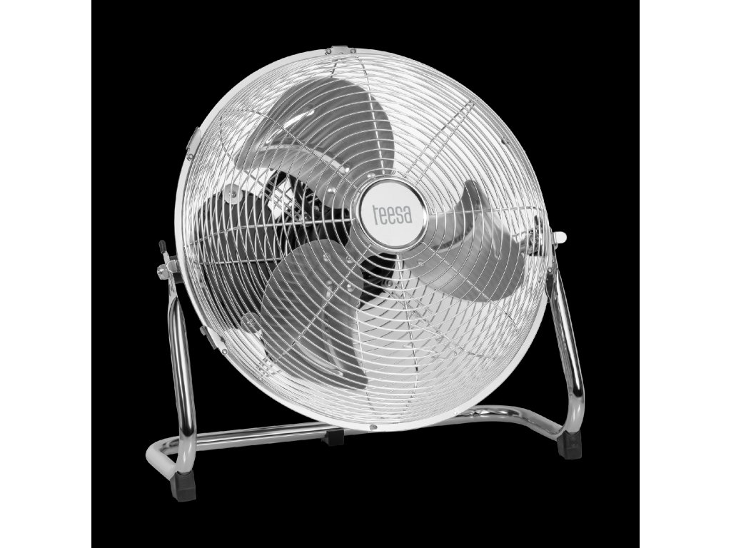 Ventilator Teesa je opremljen z aluminijastimi lopaticami in trdno kovinsko zaščito, ki zagotavljajo ne le učinkovito hlajenje, temveč tudi varnost uporabe. Dodatno stabilnost naprave zagotavlja tudi nedrseča osnova.